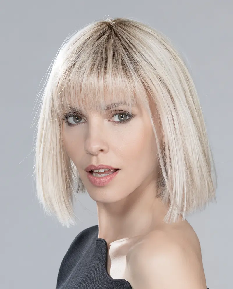 Adicione um toque de sofisticação instantânea ao seu visual com a nossa peruca sintética estilo Bob. Este corte clássico e moderno, com um comprimento elegante e uma franja charmosa, emoldura o rosto e realça seus traços.