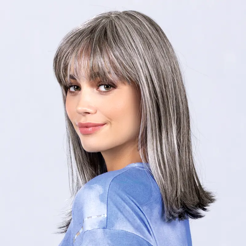 A Peruca Jacky destaca-se pelo seu design de base inovador. A área da coroa é um dos seus pontos fortes, pois cada fio de cabelo é individualmente tecido. Esta técnica permite criar um efeito incrivelmente natural, onde o cabelo parece crescer diretamente do couro cabeludo. O formato desta área varia conforme o estilo da peruca, mas a qualidade e a naturalidade são uma constante em todos os modelos. O resultado é um aspeto totalmente autêntico, especialmente nas áreas onde a pele é visível.