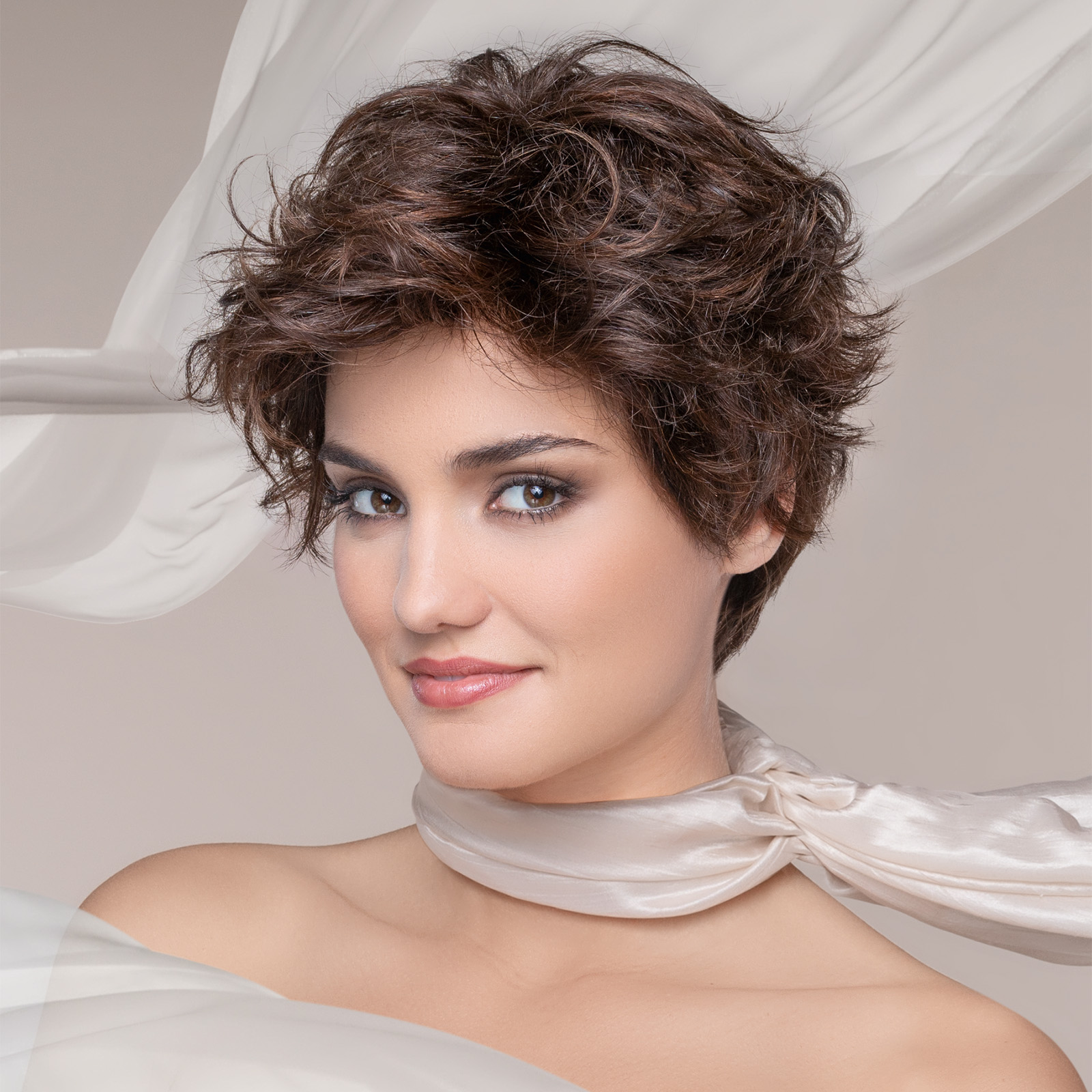 O monofilamento adicional na área da coroa ou na área da risca dá um aspecto muito natural. Este modelo de cabeleira a Mondo contém monofilamento na parte superior. É um tecido semelhante ao pele em que cada fio de cabelo é atado individualmente num minucioso trabalho feito à mão. Esta particularidade faz que o topo da peruca mondo fique igual ao seu couro cabeludo, como um penteado natural e permite mudar a risca de lado.