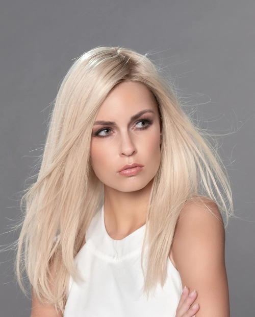 O monofilamento adicional na área da coroa ou na área da risca dá um aspecto muito natural. Este modelo de peruca contém monofilamento na parte superior. É um tecido semelhante ao pele em que cada fio de cabelo é atado individualmente num minucioso trabalho feito à mão. Esta particularidade faz que o topo da peruca zora fique igual ao seu couro cabeludo, como um penteado natural e permite mudar a risca de lado.